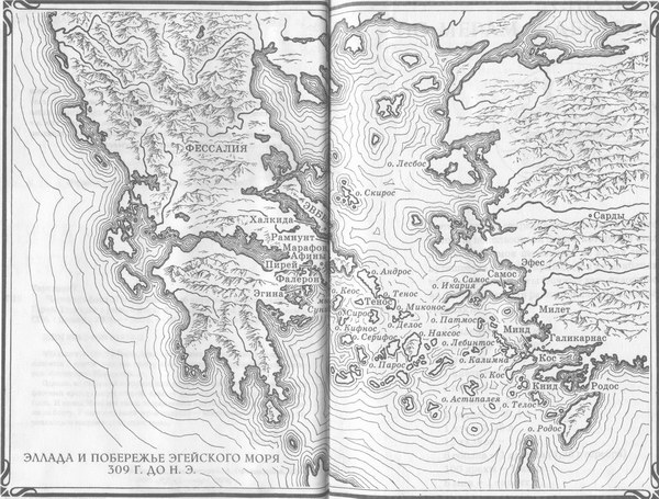 Наступила весна. Никогда еще за свои двадцать шесть лет Менедем так не радовался открытию навигационного сезона. Не то чтобы зима на Родосе в тот год выдалась суровой. За всю свою жизнь Менедем еще ни разу не видел снегопада, как и его отец. И все же… Менедем погладил рукояти рулевых весел торговой галеры «Афродита» — нежно, словно бы гладил любовницу. Рядом с ним на юте акатоса стоял его двоюродный брат Соклей. Он был на несколько месяцев старше Менедема и почти на голову выше, но капитаном судна все-таки был Менедем, тогда как Соклей исполнял обязанности тойкарха, следя за порядком на «Афродите» и за всем, что покупалось и продавалось во время торгового плавания. Соклей отлично справлялся с подсчетами. Но вот что касается людей… Что ж, общение с людьми давалось ему куда трудней. Отец Менедема крикнул с причала, к которому была пришвартована «Афродита»: — И будьте осторожны! Ради всех богов, будьте очень осторожны! — Хорошо, отец, — послушно отозвался Менедем. Он был рад покинуть Родос в том числе и потому, что оставить остров значило спастись от Филодема. Этой зимой пребывание под одной крышей с отцом далось Менедему труднее, чем в любой другой год на его памяти. Филодем с давних пор считал, что его сын ничего не может сделать правильно. Как будто для того, чтобы лишний раз это доказать, он сейчас крикнул: — Слушай своего двоюродного брата! У Соклея есть какой-никакой здравый смысл! Менедем кивнул — то есть склонил голову, как делали все эллины в знак согласия — и исподтишка бросил взгляд на Соклея. У того хватило совести изобразить, что он смущен такой похвалой со стороны представителя старшего поколения. Отец Соклея, Лисистрат, стоявший рядом с Филодемом, был куда покладистее брата, и все-таки тоже проговорил: — Извольте соблюдать осторожность на каждом шагу! — Хорошо. — Даже Соклей начал выказывать признаки раздражения, а ведь он ладил со своим отцом куда лучше, чем Менедем с Филодемом. Но Лисистрат настаивал: — Вы же знаете, в наши дни следует опасаться не только пиратов. Поскольку Птолемей и Антигон в прошлом году снова начали войну, военных галер в море будет больше, чем блох на собаке. Некоторые из этих шлюхиных сынов точно такие же пираты, только их суда быстрее, больше и мощнее пиратских. — Да, дядя Лисистрат, — терпеливо ответил Менедем. — Но если мы не отправимся в это плавание, нашей семье придется голодать. — Что ж, это верно, — признал Лисистрат. — Осторожней с торговцами шелком на Косе, — предупредил Филодем. — Они обмишурят вас, если вы дадите им хоть полшанса… Даже четверть шанса. Они считают себя властелинами всего мира, потому что шелк нельзя купить ни в каком другом месте. «И у них есть веские поводы так считать», — подумал Менедем. Вслух же сказал: — Мы сделаем все, что в наших силах. Вспомните — в прошлом году мы неплохо справились. И у нас на борту есть пурпурная краска, торговцы шелком всегда хорошо за нее платят. Его отец дал еще какой-то совет, и Соклей вполголоса проговорил: — Если мы будем и дальше их слушать, мы никогда не отплывем. — И вправду, — шепнул Менедем в ответ и громко окликнул команду: — Гребцы — по местам! Диоклей, поднимись на корму, будь добр. — Уже иду, шкипер, — ответил Диоклей. Келевсту, начальнику гребцов, было чуть за сорок, его кожа обветрилась и загорела после многих лет, проведенных в море. Пок