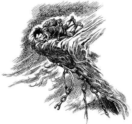 Плут терпеливо шагал, воображая, что он, воздушный пират из прославленной Армады, летит высоко над облаками, вязкая грязь осталась далеко внизу, а Гриф Мёртвая Хватка стоит на шканцах головного небесного корабля и командует своим флотом.