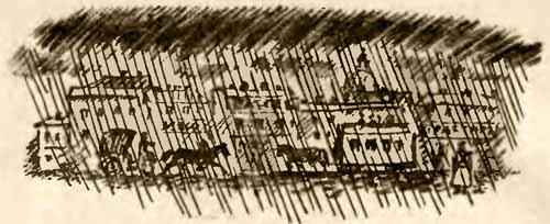 Царский Зимний дворец стоял на том же месте, где и теперь стоит. Одной стороной — на Дворцовую площадь, другой — на реку Неву. Только улицы возле него были вымощены деревянными шестиугольниками — торцами. — Вход с набережной — сказал Вася. Это точно знаю. У нас там касса. Музей. — Музей?.. — Ну, где картины всякие, статуи, мумии, оружие. Я здесь одну саблю видел. Во сабелька! На клинке узоры золотые, а сама серебряная. — Как это ты мог здесь сабельку видеть? — усомнился Минька. — Здесь — дворец. Здесь сам царь живёт! — А у нас здесь музей, «Эрмитаж» называется. И всех пускают. Иди смотри. — А царь где ж? — Нету царя. Прогнали. И Генерала прогнали, и купца твоего, — громко сказал Вася. — Тс-с… — зашипел Минька и покосился на постового Городового. — За такие слова опять в холодную посадят. Лучше давай думать, как во дворец пробраться. Туда, слышь, ни живой души не пускают. Думали они, думали, так ничего и не придумали. А между прочим, уже постовой Городовой начал на них коситься. Вдруг слышат — цок-цок, цок-цок — по деревянной мостовой трусит пара лошадей с мохнатыми ногами, тянет крытый фургон. А на фургоне нарисованы всякие овощи. А над овощами надпись: