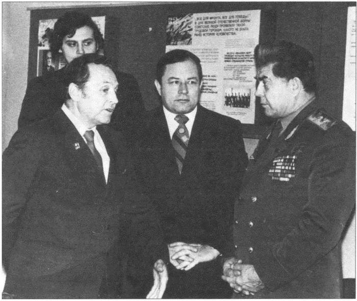 В гостях у разработчиков ЦНИРТИ летчик-космонавт Г. Береговой (справа)