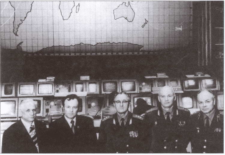 В Центре управления космическими полетами. Ю. Мажоров (второй слева)