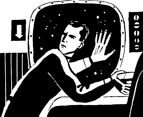 Ожидая спасения, он коротал время в центральном салоне отдыха. Здесь плавало больше дюжины тел, но два из них особенно привлекли его внимание, пока он в космическом костюме с магнитными башмаками мерил каюту шагами. Он не мог не смотреть на их лица, хотя они были раздутыми, перекошенными и безобразными. На этих лицах запечатлелись несомненные признаки удушья, а на женском лице, как показалось ему, можно было прочитать что-то еще. Нетрудно было сказать, что с ними произошло. Мужчина плавал лицом вниз, а женщина — на спине, ее руки в мольбе вскинуты к покатому потолку. Как только случилась катастрофа, он разбил колпак радиоавтомата и послал сигнал бедствия: теперь, заслышав, как монотонно стучит якорь по обшивке корабля, — поднял и пошел к входу. Он ждал до тех пор, пока дверь не распахнулась и группа спасателей не вошла внутрь. Слабо помахал им рукой. Несколькими минутами позже он сидел в патрульном корабле «Поллакет», где ему помогли выбраться из скафандра. Сразу же потерял сознание. Его привели в чувство лишь с помощью бренди. Капитан «Поллакета» Стюарт был хрупким светловолосым человеком с тонкими, неприятными чертами лица. Когда Логан окончательно пришел в себя, он обнаружил, что находится в капитанской каюте, не очень-то уютной даже для патрульного корабля второго класса. Стюарт расположился в кресле перед безобразным, но аккуратно прибранным столом. Лицом к нему, на повидавшем виды кресле с поролоновой прокладкой, сидел Логан. Стюарт извинился: — Гости у нас бывают нечасто, и они никогда не остаются надолго. Должно быть, не слишком приятный для вас визит, а? Логан кивнул: — Да, не слишком. — Мне не хотелось бы причинять вам неприятности, но боюсь, что придется задать вам несколько вопросов. Вы же знаете порядок — я должен составить официальное сообщение. — Да, конечно. Теперь мне чуть-чуть получше. — Мы держим отличное бренди, — сказал Стюарт. — Начнем сначала, мистер Логан. Вы путешествовали один? Логан чуть помедлил с ответом. — Нет, со своей женой. — Извините меня. Не могли бы вы рассказать мне, что именно случилось? — Ведь вам известны обычные правила безопасности? — спросил Логан. — После отлета с Земли для всех пассажиров в первую очередь проводят учения на случай аварии. Нужно было надеть скафандр, а я не мог сделать это со всеми вместе. У меня была мигрень. Она началась в момент старта и на пару дней выбила меня из колеи. Пришлось обучаться самому. Я взял скафандр и вернулся в свою кабину, чтобы надеть его. Знаете, находясь в таком костюме среди нормально одетых людей, чувствуешь себя дурак-дураком. Стюарт кивнул. Он то стискивал, то неторопливо потирал руки. — Внезапно погас свет, но это не встревожило меня. Я уже бывал в космосе и догадался, что это падение мощности. Я знал, что через минуту-другую включат запасной генератор, и все-таки чувствовал, что заперт… заперт в темноте, в своей кабине. Ощупью я выбрался в главный коридор. Я слышал человеческую речь, смех; где-то кричала женщина, но большая часть людей, казалось, понимала происходящее. Затем послышалось какое-то шипение, и голоса пропали. Просто будто кто-то повернул выключатель, и за одну секунду их не стало. Я пошел в центральный салон, где оставил жену, и при свете Земли, проникавшем сквозь прозрачные транспексовые окна, увидел плавающие тела. Все люди были мертвы. Пригляде