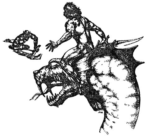 Мой мозг лихорадочно заработал. На какое-то мгновение я оцепенел, глядя в глаза существа, представлявшегося мм таким же невероятным, как единорог или крылатый конь. У него была темная, отливавшая синим кожа. Как и варнальцы, он не носил того, что можно было бы назвать одеждой. Его тело было покрыто кожаными доспехами; голову, на которой не было видно волос, защищал такой же кожаный шлем, но с металлическими пластинками, а запястья — плотно прилегавшие кожаные браслеты с прикрепленным к ним оружием. У страшного существа было широкое, чуть сужающееся к подбородку лицо с глазами-щелочками. Огромная безобразная пасть сейчас была открыта в предвкушении скорой победы. Обнажился неровный ряд редких черных зубов. Из-под шлема торчали большие уши. Пальцы были покрыты — усыпаны! — перстнями с грубо отделанными драгоценными камнями. По всему телу играли крепкие мускулы. Его дахара не была похожа на мирное и безобидное животное, на котором ехал я. Она казалась такой же свирепой, как и ее всадник, когда так нетерпеливо топтала нежный зеленый мох полянки. На ее теле также были кожаные доспехи, а на голове — покрытый шипами шлем. Аргзун прорычал что-то невнятное, хотя было очевидно, что он говорил на том языке, который я уже неплохо понимал. Потянувшись за прикрепленными к поясу пиками, я и не надеялся на успех. Просто я подумал — с изрядной долей фатализма, — что если мне суждено умереть, то сделаю я это с оружием в руках. Аргзунский воин захохотал, явно издеваясь надо мной, и махнул мечом, одновременно пришпорив дахару, чтобы послать ее вперед. Тут меня спасла моя реакция. В мгновение ока одним движением я выхватил пику и сразу же швырнул ее прямо в лицо великану. Увидев это, он злобно зарычал, но с быстротой, невероятной в таком грузном человеке, отбил мою пику мечом. К тому времени у меня в руке была уже вторая пика. Моя дахара заметно нервничала, видя, как великан стремительно приближался, размахивая мечом. Я пригнулся, и вовремя — меч прошел в дюйме от моей головы. Великан разогнался так, что пронесся мимо, и когда он пытался придержать свою дахару, которая была гораздо хуже обучена, чем моя, я развернулся и метнул в него еще одну пику. Она попала ему в руку. Великан вскрикнул от боли и ярости, и когда он на этот раз направил на меня свою дахару, она, казалось, не бежала, а летела по воздуху. У меня оставались только две пики. Одну из них я кинул, когда он подскакал ко мне, размахивая перед собой мечом так же, как это делали всадники на Земле. Я промахнулся. Что ж, по крайней мере, он был ранен в руку, державшую дубинку, и мог теперь орудовать только мечом. Великан замахнулся — не увернуться! Но что делать? Считанные секунды, чтобы спастись! Схватив оставшуюся пику, я спрыгнул с дахары и коснулся земли как раз в тот момент, когда его меч рассек воздух в том месте, где я только что был. Несмотря на боль от ушибов, я вскочил, все еще сжимая в руке последнюю пику. Нужно было пользоваться ею наверняка, иначе — смерть. В ожидании его возвращения я согнулся, приняв устойчивую позу. Мой противник хрипло бранился, пытаясь развернуть непокорную дахару. Увидев меня, он приостановился, и его грудь под доспехами затряслась: он разразился своим диким животным смехом, откинув назад голову. Это было его ошибкой. Благодаря провидение, я швырнул пику, вложив в это движение всю силу и 