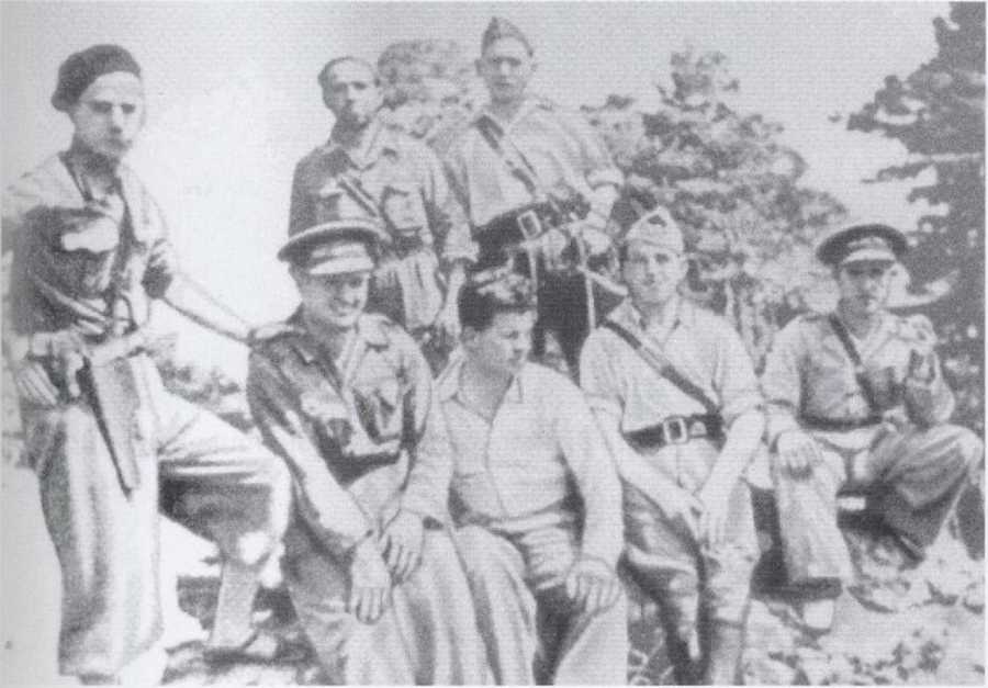 Слева (1-й ряд): командир разведывательно-диверсионного отряда Л. Василевский, комиссар отряда Галарса Перес Перегрин, старший советник 14-го партизанского корпуса Г. Сыроежкин и бойцы отряда. Сентябрь 1937 г.