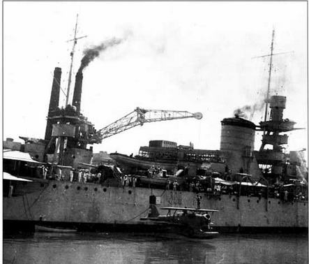 Вверху: «Альмиранте Браун», 1932 г. Хорошо видна грузовая стрела для подъема гидросамолета с воды