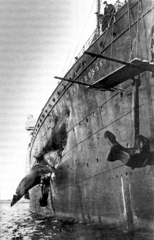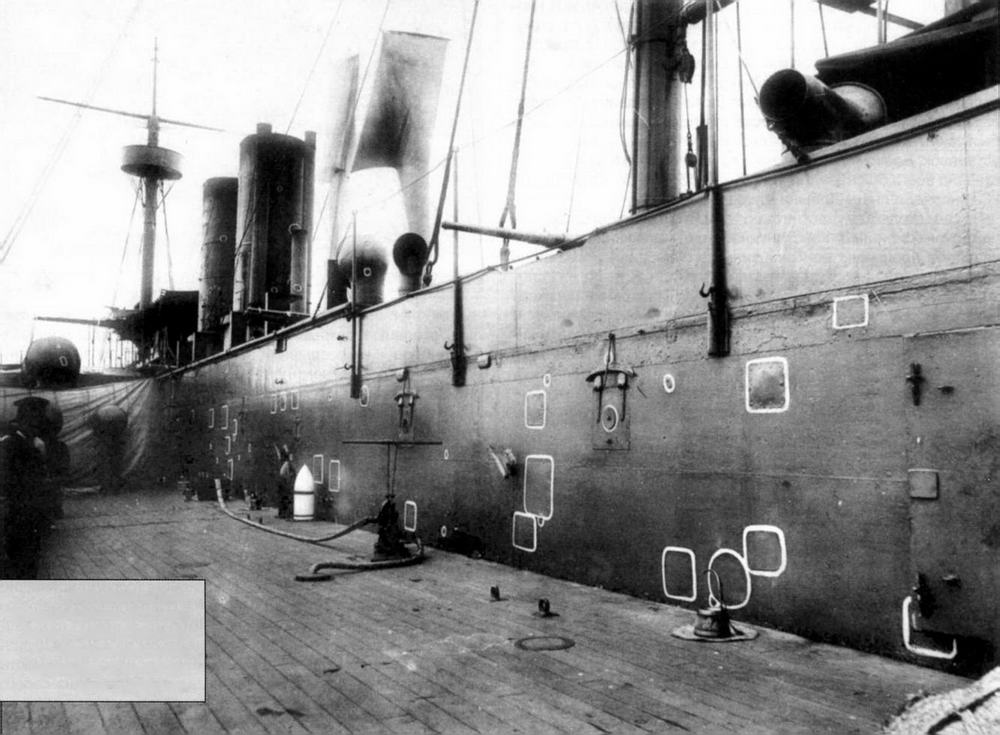 Повреждения полученные в результате столкновения с английским пароходом "Ориноко", 21 ноября 1906 г.