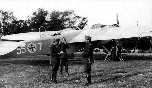 Авторитет Георгиевских наград в России был традиционно высок, и они стали истинно народным символом героизма, проявленного при защите Отечества. Это обусловило популярность Георгиевской символики в самых разнообразных воинских формированиях. При создании Поволжской Народной армии летом 1918 года встал вопрос о знаках различия. Тон в новом антибольшевистском формировании задавал Комитет членов Всероссийского Учредительного собрания (Комуч), в котором доминировали социалисты-революционеры (эсеры). По этой причине "реанимация" имперской символики, которая ассоциировалась с династией Романовых, на первых порах была просто немыслима. Вместо традиционной кокарды было принято решение использовать отрезок Георгиевской ленточки. Нововведение прижилось, и не только на головных уборах: черно-оранжевые полосы стали наносить на плоскости и стабилизаторы аэропланов Поволжской армии. Тем не менее, усвоить новую систему опознавания летательных аппаратов толком не успели даже собственные зенитчики: во время боев за Казань им удалось сбить лишь один аэроплан, да и тот - свой. По-видимому, в азарте боя артиллеристы просто не обратили внимания на черно-оранжевые полосы на плоскостях. К сожалению, автору не известны оригинальные фотоснимки летательных аппаратов авиаотрядов Поволжской армии с Георгиевскими опознавательными знаками, поэтому не представляется возможным сделать однозначный вывод о том, полностью ли Георгиевские цвета заменили трехцветные (бело-сине-красные) розетки на крыльях, фюзеляже и стабилизаторе, или же использовались совместно - в различных комбинациях (рис.1, обл.З). Минимальное представление может дать масштабная модель "Моран-Парасоля", выполненная Дмитрием Морозовым (рис.2, обл.З). Следующая попытка использовать награду в качестве опознавательного знака военной авиации была предпринята в Болгарии в 1937 г. Возрождая ВВС, болгары решили использовать в качестве "авиавизитки" изображение ордена "За храбрость" 4-й степени 1-го класса. Орден "За храбрость" был первой наградой Болгарии, учрежденной после освобождения страны от османского ига. По своему дизайну и статутным положениям награда напоминала гессенский орден "За военные заслуги" и, в большей степени, российский - Святого Георгия. В частности, при ордене существовал солдатский крест в четырех степенях, да и название болгарской награды было весьма созвучно девизу российского ордена ("За службу и храбрость"). Являясь высшим боевым отличием Болгарии, орден "За храбрость" стал символом воинской доблести и мужества. Лучи крестов высших степеней ордена покрывались белой эмалью, а четвертой степени - темно-малиновой. Для использования в качестве опознавательного знака ВВС был выбран орденский крест низшей степени, помещенный в белый круг. Можно предположить, что определяющим критерием выбора послужила легкость "прочтения" красного креста, оттененного белым фоном, на фюзеляже и плоскостях, окрашенных в хаки (рис.З, обл.З). Деталировка изображения орденского креста подверглась некоторым изменениям: • по окружности центрального медальона не наносилась надпись "За храбрость"; • на верхнем и нижнем лучах креста не обозначались даты "1915", "1916", "1917", как это практиковалось в годы Первой Мировой войны (рис.4,обл.З); • мечи, а также окантовка лучей и центрального медальона кр