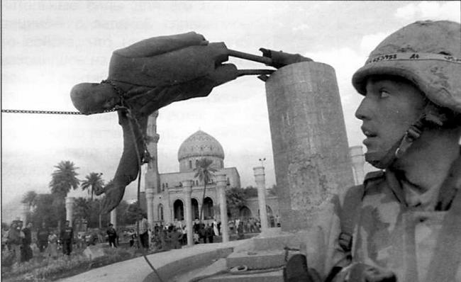 Багдад, 9 апреля 2003 г. Американские морпехи свергают статую Саддама Хусейна