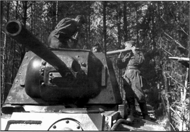 Гэтовясь к боям советские танкисты загружают боеприпасы в тридцатьчетверку