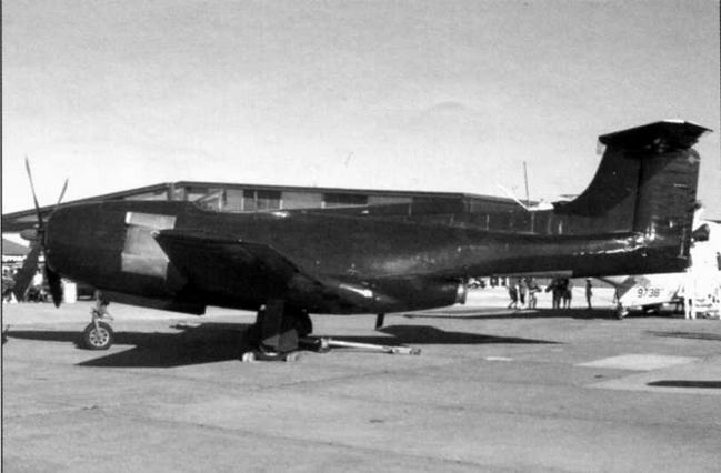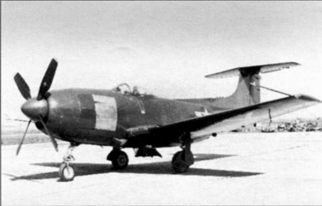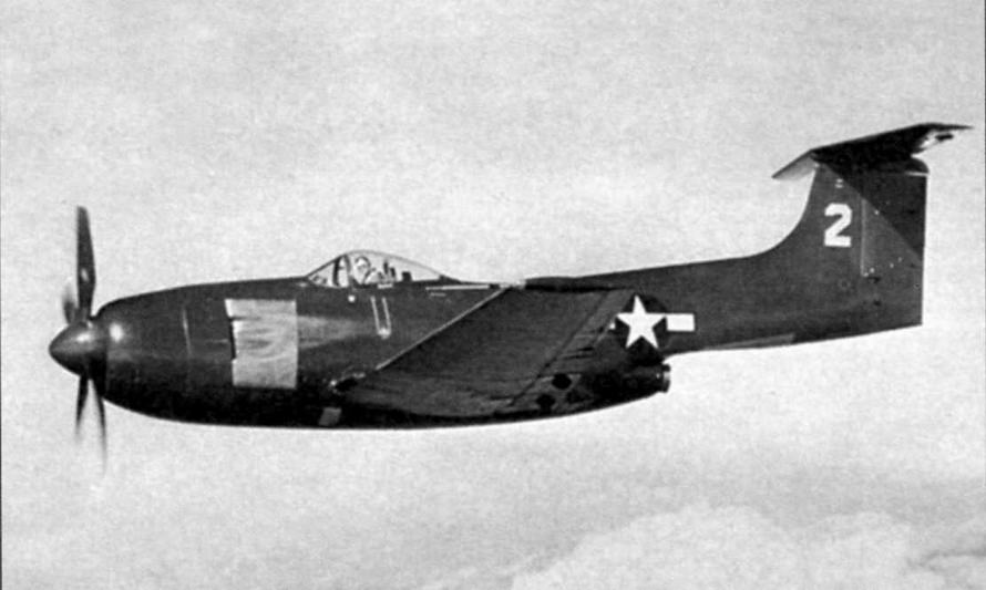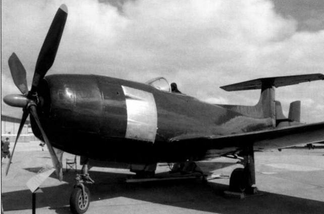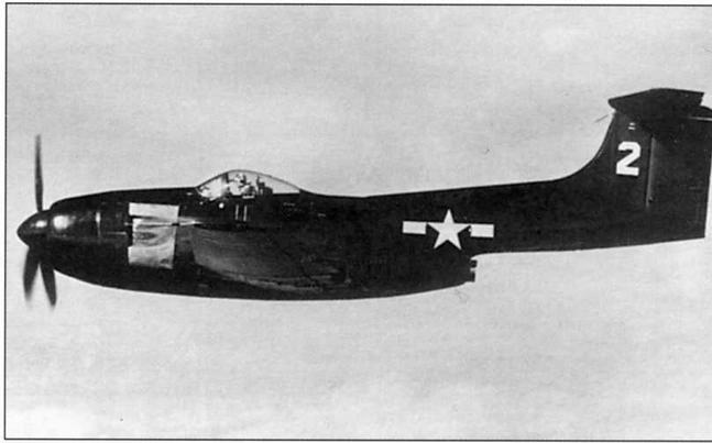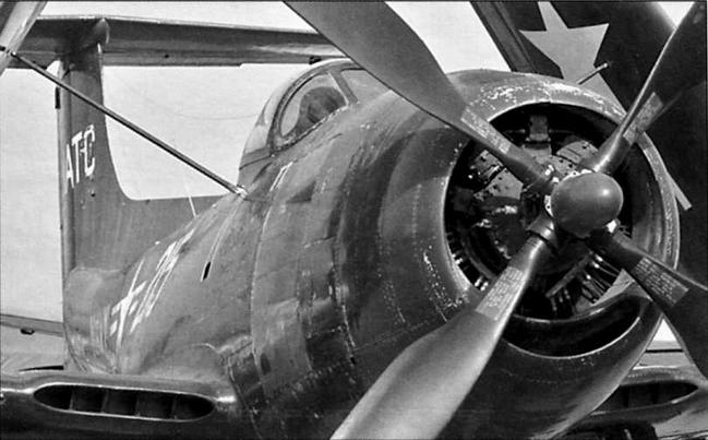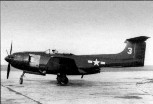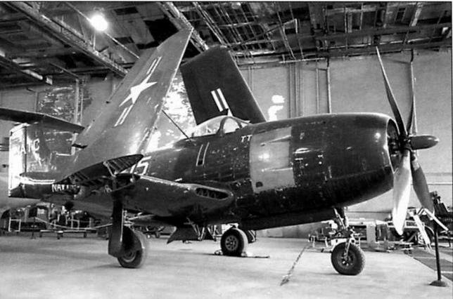 Носовая часть XF15C-1. Хорошо виден поршневой двигатель R-2800 и воздухозаборник ТРД в корневой части крыла