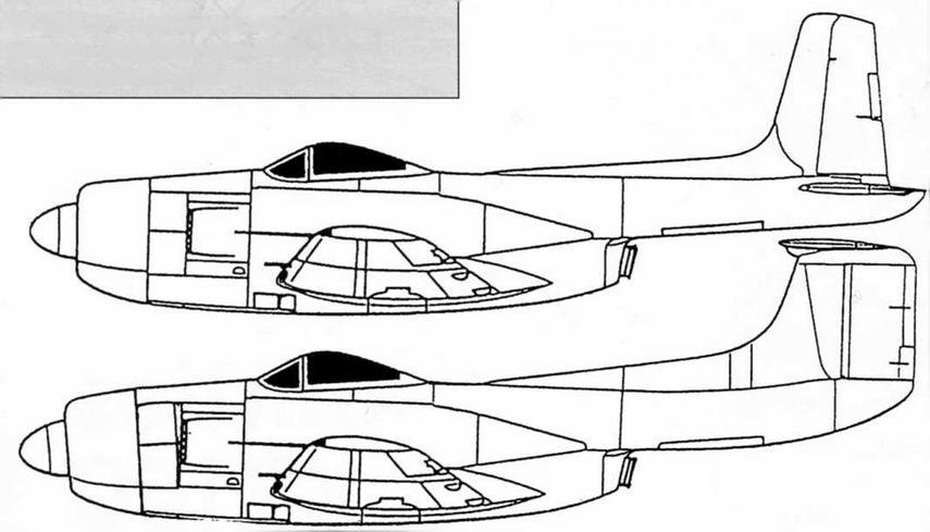 XF15C-1 в исходной конфигурации, внизу - Доработанный XF15С-1 с Т-образным оперением