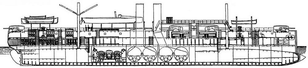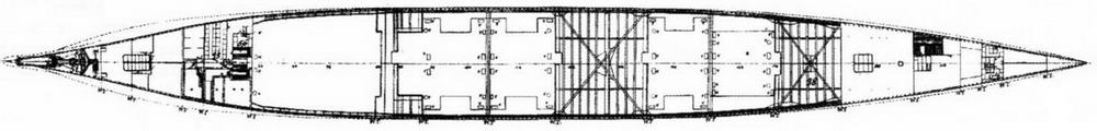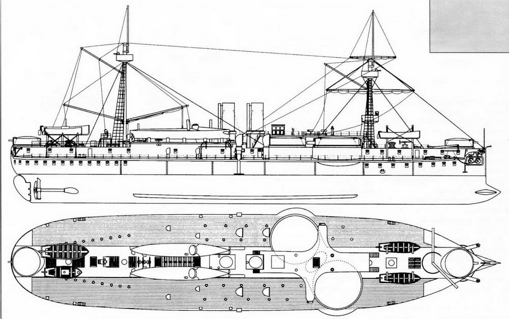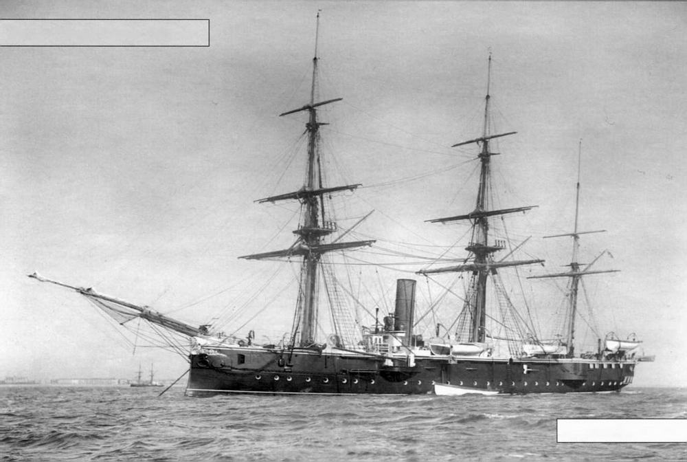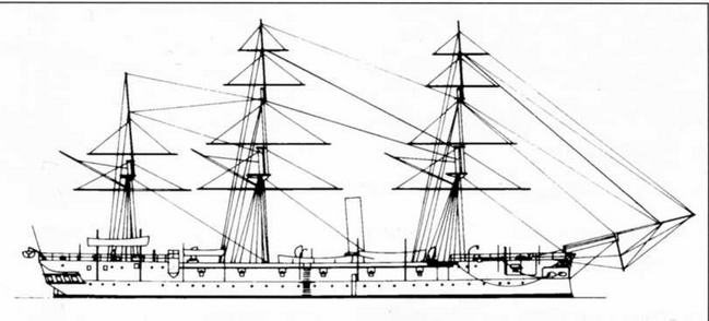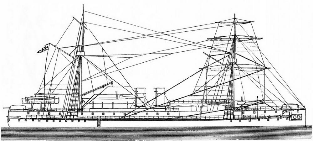 В середине 1870-х годов Адмиралтейство приняло два принципиальных решения, определивших дельнейшее развитие кораблей крейсерского класса. Во-первых, размеры крейсеров были строго ограничены половиной водоизмещения от современных им броненосцев. Тем самым, место фрегатов окончательно заняли корветы, не имеющие закрытой батареи. Во-вторых, сами корветы признали целесообразным разделить на два подкласса. Первый предназначался для службы при главных силах флота - разведывания движений вражеских эскадр и участия в таких операциях, где требуется внезапность и быстрота удара. Отличительной особенностью таких кораблей должна была стать чрезвычайно высокая по тем временам скорость под парами - до 18 узлов - и большой запас топлива при сравнительно небольшой площади парусности. Воплощением этих идей стали посыльные корабли "Айрис" и "Меркьюри", позже переклассифицированные в крейсера 2-го класса Второй тип крейсеров предназначался для действий на океанских коммуникациях и службы на отдаленных станциях. Поскольку угольных станций в таких районах было еще довольно немного, а расстояния между ними - значительными, становилась очевидной необходимость сохранения на этих кораблях развитой парусной оснастки для совершения длительных переходов. Постройка шести корветов была санкционирована в 1876 г. Все они получали названия, начинающиеся с третьей буквы латинского алфавита, поэтому известны как корветы типа "С", или типа "Комус" - по имени головного корабля. Проект был разработан главным конструктором флота Натаниэлем Барнаби на основе корветов предыдущего типа "Бодицея". Сохранив классические формы, он, тем не менее, нес в себе немало нового. Прежде всего, это касалось материала корпуса. Корветы типа "С" стали не только первыми кораблями водоизмещением менее 3000 т с металлическим корпусом, но и первыми, у которых обшивка изготавливалась не из привычного железа, а из стали. Хотя сталь начала применяться в качестве судостроительного материала еще за четверть века до этого, британскими корабелами она практически не использовалась [* Впервые сталь относительно широко применил Эдвард Рид в 1863-1865 гг. при постройке броненосца "Беллерофон", у которого стальными выполнялись продольные стрингеры и связные поясья.] как ввиду дороговизны, так и трудности придания ей требуемого химического состава. Лишь когда благодаря прогрессу в металлургии, так называемая, "мягкая сталь" стала широко применяться в коммерческом судостроении, Адмиралтейство решилось использовать ее при постройке корветов типа "С", однако не доверило это казенным верфям, а заказало корабли частному судостроителю Джону Элдеру из Глазго, уже имевшему большой опыт в деле стального судостроения. Вторым важным нововведением, впервые примененным на малых крейсерах, стала броневая палуба. Наконец, в соответствии духу времени, носовой оконечности придали таранную форму. Шесть корветов, получившие имена "Комус", "Кэрисфорт", "Чемпион", "Клеопатра", "Конквест" и "Кюрасао", были заложены на верфи Элдера в Говэне (пригород Глазго) в один день - 17 августа 1876 г. Через два года на казенной верфи в Чатэме заложили корвет "Констанс", а в июле 1879 г. в Портсмутском адмиралтействе приступили к постройке еще двух - "Корделия" и "Канада". Таким образом, всего было построено девять однотипных единиц, что стало 