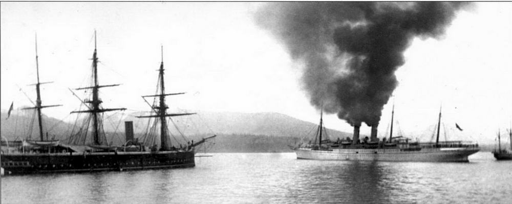 "Кайзер Вильгельм дер Гроссе" проходит мимо форта Лафайет, Нью-Йорк