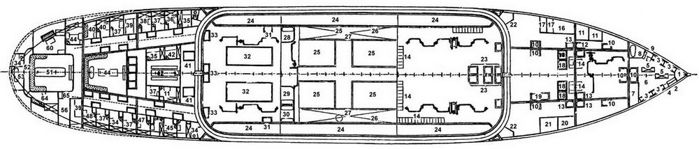 При этой роскоши общественных помещений, каюты первого класса (кроме четырех апартаментов состоявших из гостиной, спальни и ванной) были довольно невелики, более того почти половина из них не имела иллюминаторов и освещалась только искусственным светом. Сейчас это может показаться странным, но почти все каюты роскошного первого класса не имели собственного туалета, а ванны (числом 16) и нескольких душевых располагались в отдельных помещениях. Ванные комнаты и душевые подразделялись на мужские (к ним вели зеленые дорожки) и женские, с красными ковровыми дорожками перед ними. Зато каждая каюта имела картину в богатой раме. Помещения первого класса занимали лучшую площадь на палубах лайнера, середину корпуса и верхние палубы, там, где обилен свежий воздух, свет солнца, и минимально вредное воздействие качки. Второй класс был организован скромнее, его от помещений первого класса отделяли гигантские кухни (с 4-мя гигантскими котлами для приготовления пищи) и кожухи главных паровых машин. Второй класс имел более тесные каюты, в основном на 4-х пассажиров вместо двухместных кают первого класса. Обеденный салон второго класса был сдвинут в корму, занимая лишь один межпалубный ярус. Салон на 178 человек (плюс семнадцать "детских" мест в отдельном помещении) был отделан гораздо проще, но то же имел на стенах гравюры, посвященные истории создания Германской империи. Освещался он, в основном, электричеством. Но и во втором классе была своя курительная комната (всего 8,5x7,4 м), дамский салон и так далее. Отделка, спроектированная Поппе для помещений второго класса, была хотя и проще, но весьма приличной - деревянные, крашенные белой краской панели с резьбой, но без золочения, деревянные палубы не имевшие ковров, однако, небольшие ковры были в каютах. Третий, он же эмигрантский класс, вел, по настоящему, спартанскую жизнь: в основном нары, занимавшие отсеки на главной и промежуточной палубах. Прием пищи на откидных столах и подвесных лавках. Примерно так же располагались и рядовые члены экипажа, офицеры же имели каюты, соответствовавшие каютам первого класса, капитану же полагалось помещение у мостика с роскошью вполне приличной даже апартаментам. Всего лайнер мог взять на борт 206 пассажиров первого класса (плюс 134 дополнительных места - так в основном перевозили детей), 226 пассажиров второго класса (плюс 120 дополнительных мест) и 1074 эммигранта (встречаются и другие цифры пассажировместимости, - лайнер не раз перепланировался под разную загрузку кают, например, число пассажиров первого класса, путем установки дополнительных постелей в каютах и перепланировке кают второго класса, можно было бы, при необходимости, довести до 604-х человек, понятно при меньшем уровне комфорта). Экипаж же лайнера составлял 468-488 человек, из них 60 матросов и офицеров "палубной команды", 45 механиков, 174 кочегара и штивщика, 37 коков и помощников, 9 сотрудников почтовой службы, остальные - представители обслуживающего персонала. В ходе роскошных круизов за счет пассажиров третьего класса количество обслуживающего персонала на судне резко возрастало и оказывалось до 800 членов экипажа. Работы по достройке велись быстро и эффективно, и к 12 сентября того же года "Кайзер Вильгельм дер Гроссе" был готов к плаванию. В рамках испытаний заказчик потребовал от верфи, чтобы пароход соверш