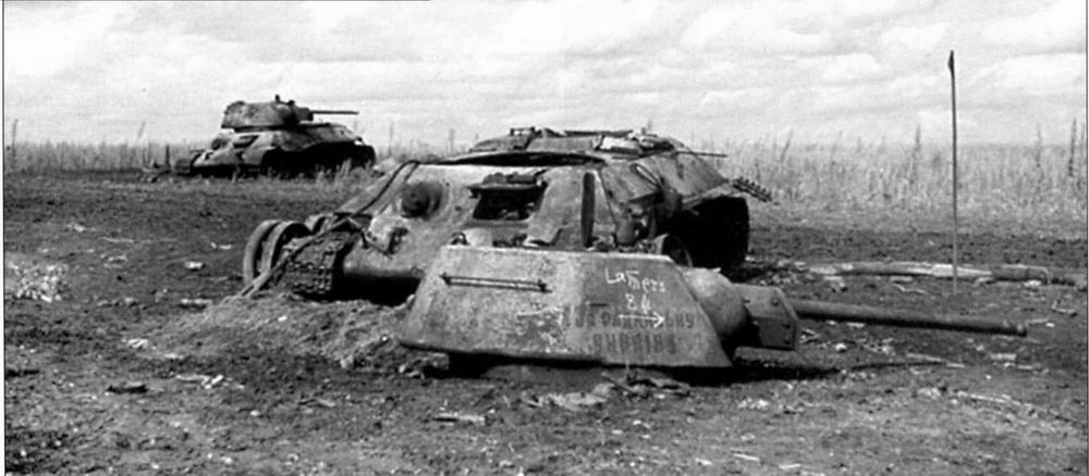 Впрочем, танкисты о том, что они остались без пехотной поддержки даже не подозревали, продолжая выполнять боевую задачу. 14 танков, вероятно из 587-го отдельного танкового батальона капитана Чундакова из состава 219-й танковой бригады, быстро приближались к командному пункту разведывательного батальона. Один из танков уже направил дуло своего орудия на вход в командный пункт, а персонал штаба Вейдингера бросился на пол, когда танки попали под обстрел с фланга. До сих пор точно не ясно, из чего именно велся обстрел советских танков. Как мы помним, есть информация, что в распоряжении Вейдингера было два штурмовых орудия, вполне возможно, что это были именно они. По другим данным, Вейдингер просто вызвал огонь артиллерии на себя [10, р. 116] (возможно, это была 11-я батарея артиллерийского полка) однако нам кажется сомнительной подобная точность стрельбы артиллерии, когда очень быстро были поражены все 14 танков и это в дождь, и не при стрельбе прямой наводкой. А вот хорошо замаскированным самоходкам такая задача была вполне по силам. Как бы то ни было, но в короткое время 14 советских танков превратились в пылающие костры. Уцелевшие члены их экипажей попали в плен, лишь немногим удалось вернуться к своим. Раненый советский лейтенант- танкист, заползший на командный пост Вейдингера, в надежде, что немцы окажут ему помощь, как в бреду повторял: „Все пропало, все танки пропали“. С большой долей вероятности, можно предположить, что это был лейтенант Василий Никитович Чмиль, командир взвода тридцатьчетверок из 587- го отдельного танкового батальона 219-й танковой бригады. Эсэсовцы оказали раненому советскому офицеру первую помощь, перевязали и напоили. Пленных отправили в тыл [11, р.207]. В советских документах лейтенант В.Н. Чмиль был указан как погибший, но позже выяснилось, что он оказался в плену из которого и был освобожден в конце войны. Также, по данным документальной базы „ОВД Мемориал“, из состава 587-го отдельного танкового батальона погибшими 12 сентября 1943 года числятся командир батальона капитан Леонид Григорьевич Чундаков (сгорел в танке), а также два командира взводов, оба в звании младших лейтенантов: Аркадий Иванович Капустин и Григорий Гаврилович Полищук. Между тем, другая часть советских танков успешно миновала как позиции разведывательного батальона, так и позиции армейского полка, и попыталась углубиться в немецкую оборону. Тем временем, поднятая по тревоге 3-я танковая рота оберштурмфюрера СС Йоахима Шломки (как мы помним, рота находились в глубине обороны в качестве мобильного резерва) в полной боевой готовности ожидала приближения бронетехники противника. Позиция „Пантер“ Шломки оказалась столь удачной, что советские танки вышли прямо под дула их грозных 75-мм орудий. Для советских танкистов это столкновение оказалось полной неожиданностью. Хорст Летцнер описал это так: „Наконец, мы через эфир получаем разрешение открыть огонь. Русские приходят в замешательство и не могут нас сразу обнаружить. Они ведут беспорядочный огонь. Эрнст Циттла, наш заряжающий, перед тем как отправить снаряд в ствол, гладит его на дорогу с пожеланием успеха. К нашему наводчику Гейнцу Шрёдеру снова вернулось его прежнее хладнокровие. В то время как наш командир Эммерлинг уже начинает суетиться в башне, мы спокойно целимся и ведем огонь. Уже после втор
