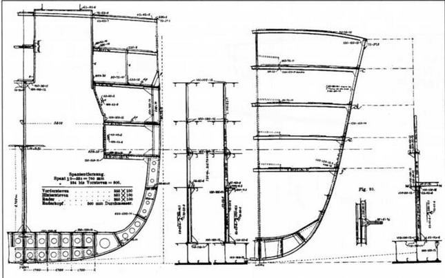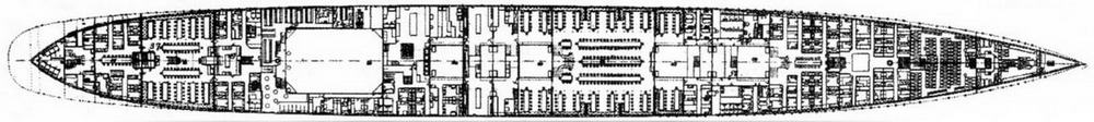 Пар последовательно поступал от котлов в цилиндры, расширяясь в каждом из них: цилиндр высокого давления (диаметром 52 дюйма - 1,32 м), среднего давления (90 дюймов - 2,286 м), и два цилиндра низкого (по 96 дюймов - 2,438 м) - последние два работали на давлении пара ниже атмосферного - за счет вакуума образующегося при конденсации пара в холодильниках паровых машин (холодильник конденсатор каждой машины был выполнен из листовой меди с 5530 трубками и площадью охлаждения 1649 м²). Ход поршня составлял 1,752 м, реверс осуществлялся при помощи дополнительной паровой машины системы Стефансона, переключавшей клапана. Паровые машины лайнера были сбалансированы по системе Шлика для снижения вибраций и весили каждая почти по 1000 тонн. Каждый цилиндр машины опирался на четыре колонны литой стали, а вся паровая машина собрана на основании литого чугуна. Машины лайнера были созданы даже раньше готовности корпуса, уже в конце 1896 года они были предварительно собраны на заводе "Вулкан". Двигатели превысили проектную мощность - каждая машина без особых затруднений развила несколько больше 15 500 л.с. Пара от котлов хватало и на 68 вспомогательных паровых машин - приводов генераторов, вентиляторов, лебедок, холодильной машины и т.д. Лайнер "Кайзер Вильгельм дер Гроссе" приводился в движение двумя трехлопастными винтами, диаметром 6,99 м, изготовленными из вулканической бронзы (сплав меди, цинка, алюминия и олова). Винты были установлены так что винт правого борта сдвинут чуть вперед (примерно на 1 м), по отношению к винту левого борта, и плоскости вращения лопастей немного (на 200 мм) перекрываются. Забегая вперед, стоит отметить, что лайнеру повезло в том, что на него не стали ставить машины четырехкратного расширения - их доработка отняла у германских специалистов несколько лет. Но наличие предварительных планов об их установке привела к тому, что из справочника в справочник кочуют сведения об их наличии на "Кайзере Вильгельме дер Гроссе". Установленная же силовая установка показала себя вполне надежной и относительно экономически эффективной в эксплуатации. Конечно, следует понимать, что чаще всего лайнеры "рекордсмены" были в целом убыточны и дотировались за счет доходов получаемых с "обычных" судов, но служили лучшей рекламой компании и приводили к возрастанию числа пассажиров, главное тут конечно было соблюсти баланс и владельцам "Кайзера Вильгельма дер Гроссе" это безусловно удалось. Строительство лайнера вели в Штетине, торжественной церемонии закладки не было - это не в германской традиции, поэтому можно просто отметить, что первые пластины киля были уложены 16 марта 1896 г., а уже 4 мая 1897-го года весящий более 8000 т корпус лайнера был торжественно спущен на воду в присутствии императора Вильгельма II, крестной матерью была супруга президента NDL госпожа Плате. Новый гигант получил от публики прозвище "Большой кайзер". Свою задачу главный конструктор лайнера выполнил блестяще и передал эстафету второму творцу этого превосходного плавучего дворца. Знакомьтесь - Иоганн Георг Поппе (Johann Georg Рорре), выдающийся немецкий архитектор работавший в вычурном и эклетическом стиле названом "Бременское барокко". Времена, когда океанский лайнер создавал только конструктор инженер прошли, от плавучих дворцов стали требовать не только скорости, комфорта и безопасности для пассажир