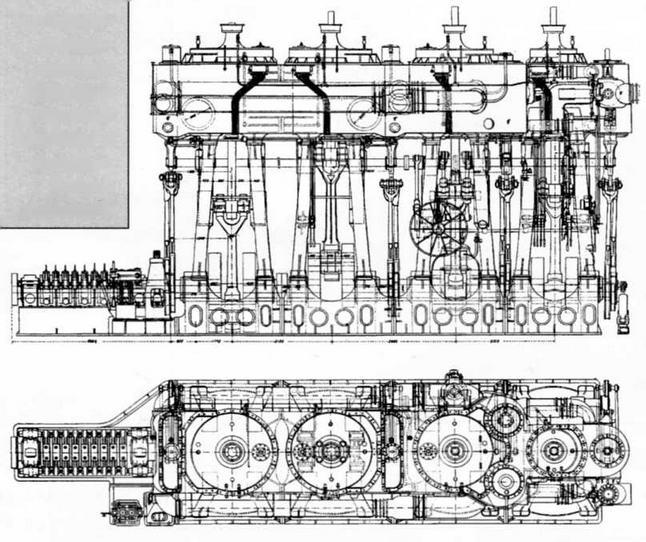 Четырехцилиндровая паровая машина тройного расширения лайнера