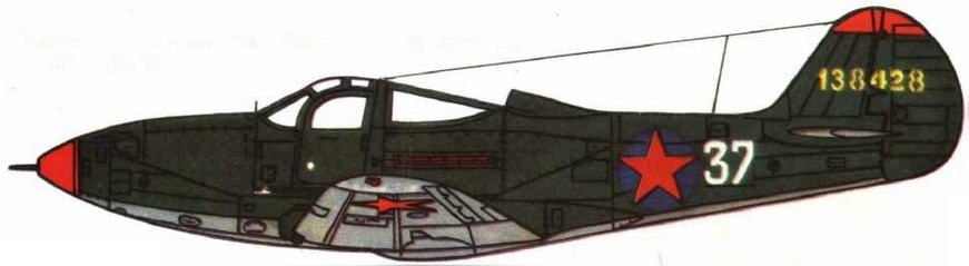 P-39D-2 ГСС гв. ст. л-та В.И.Фадеева. Красные кок винта и "гребешок" киля — отличительные знаки 16 гв. ИАП. Схема USAAF (OD — NG)