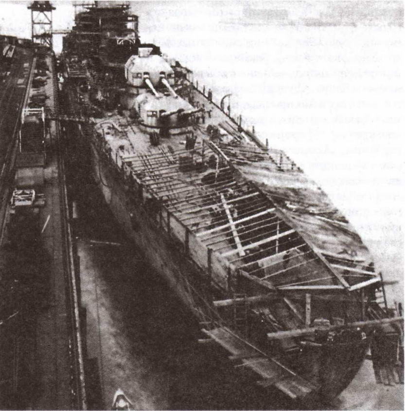 Носовая часть корпуса крейсера после ремонта, ноябрь 1944 г.