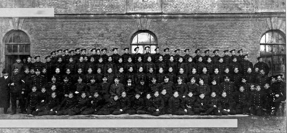 Выпускники кронштадтской Школы юнг. Шестнадцатый справа в третьем ряду Яаак Фелдманне
