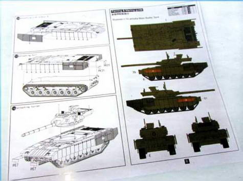 Сборка верхней части корпуса прошла абсолютно без проблем, стыкуемость деталей в этом наборе почти идеальная. Просто следуйте инструкции и будьте осторожны в работе с травлением, чтобы не деформировать его. Корпус «Арматы» обладает несколькими деталями очень сложной формы, такими как, к примеру, кожухи выхлопа. В наборе они даны травлеными деталями, однако инструкция умалчивает о том, как именно их нужно сгибать, показывая уже «посаженную» на место деталь. Чтобы не ошибиться, лично я пользовался уже имеющимися в сети фотообходами настоящей машины. Также я призываю вас быть внимательными при установке боковых «юбок» - на корпусе посадочные места никак не обозначены и пришлось чуть-чуть напрячь глазомер и координацию, чтобы установить экраны на правильном уровне. Шасси и траки - слабое место этого набора. Сами катки, как я говорил выше, некопийны, есть проблема и с траками. В наборе они даны с полнотелыми гребнями, в то время как на оригинале мы наблюдаем гребни пустотелые. Впрочем, к этому можно относиться чуть проще: в итоговой сборке большую часть траков просто-напросто не видно за катками и бортовыми экранами. Самая большая «головная боль» - несоответствие инструкции и модели в части сборки гусеничных лент. Схема сборки дана на машины с шестью опорными катками, в то время, как у «Арматы» этих катков, как известно, семь. Если следовать схеме сборки, предлагаемой производителем, длины получившейся ленты вам просто-напросто не хватит. Будьте готовы наращивать недостающее с помощью запасных траков, благо их дано достаточно. Для любителей строгого соответствия матчасти: есть в наборе ошибка с поддерживающими катками - их три на борт, в то время как у реальной машины - четыре. Для «изкоробочников», к коим отношу и себя: поддерживающих катков не видно вовсе. Отдельным пунктом сборки являются противокуммулятивные решетки, полностью выполненные из фототравленых деталей, около 20 на одну сторону. Здесь моделисту предстоит проявить максимум аккуратности и усидчивости, чтобы, во-первых, не повредить хрупкие части, а во-вторых, собрать их в правильной последовательности. Процесс стройки заканчивается соединением всех «слоев» нашего «бронеторта»: склеивая половины корпуса, наблюдаем идеальную стыкуемость, без клея устанавливаем башенный модель и готово!