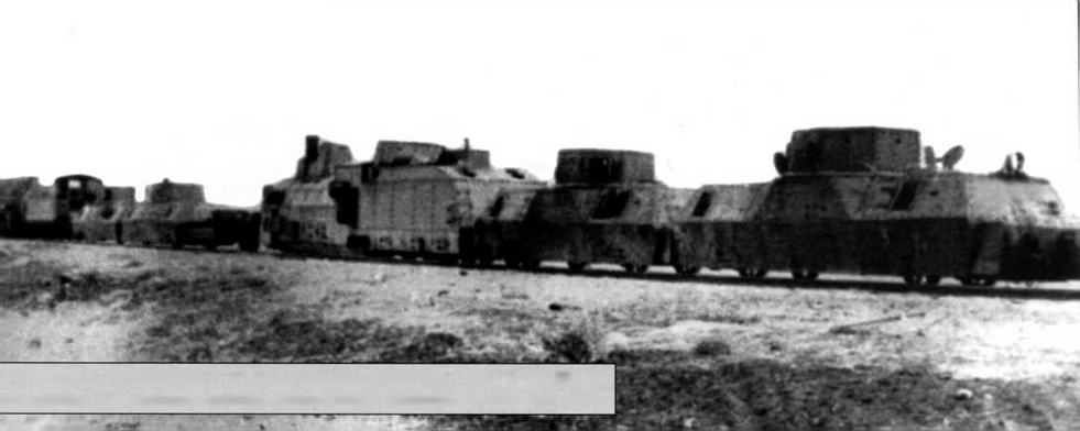 Общий вид бронепоезда № 2 "Александр Невский" 25-го ОДБП, потерянного в районе станции Басаргино. Сентябрь 1942 года (СР)