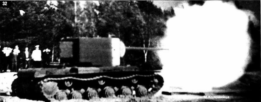 Танк КВ-1 с установленной в штатной башне 76-мм пушкой Ф-27 (ЗИС-5) во время испытаний стрельбой. 1941 г.