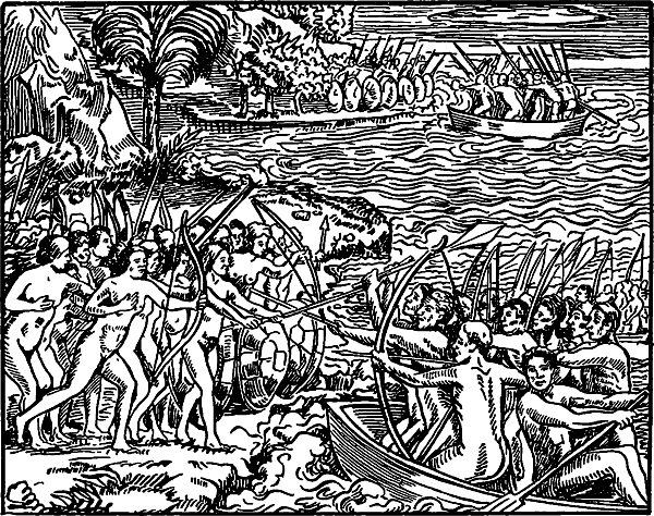 За нами плывет в каноэ индеец. Он хочет убедиться, что мы действительно уехали и его племя может быть спокойным. Когда протока стала сужаться, появились сети, поставленные для ловли креветок, и полупогруженные в воду верши, индеец покинул нас. Здесь было много рыбаков, собиравшихся возвращаться в селение. Всю ночь они бодрствовали, боясь как бы течение не унесло в море ивовые верши, которые прилив наполнил креветками. Всю ночь провели рыбаки в лодках, над ними вились тучи гудящей мошкары. Кажется, что они совершенно не замечают нас, хотя на самом деле внимательно, затаив страх и ненависть, следят за нами.