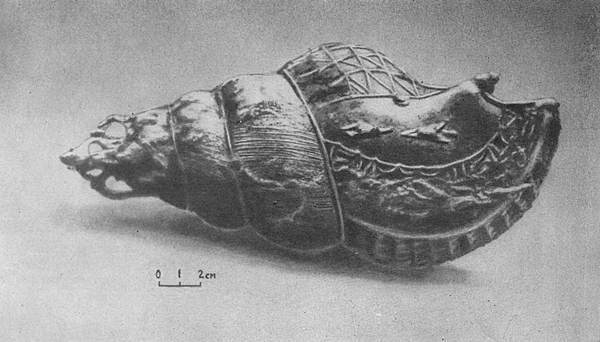 Бронзовый сосуд в форме раковиныКроме сосудов было найдено много бронзовых изделий иного назначения. Среди них бронзовые рукоятки и ножны мечей, отлитые по способу «потерянной восковой модели» и украшенные затейливым орнаментом; подвески, медальоны, пояс из орнаментированных бронзовых пластинок и т. п. Особенно много в кладе Игбо маленьких полых бронзовых масок. Маски выразительно и реалистично изображают животных, которые обитают в лесах и саваннах Нигерии: слонов, леопардов, различных птиц, а из домашних животных — быков. Иногда маски сделаны в виде человеческих лиц, с характерными высокими прическами, шрамами, нанесенными на лбу и на щеках. Так, вероятно, выглядели соплеменники мастера, изготовившего эти маски. Все бронзовые изделия из сокровищницы Игбо, независимо от их назначения, покрыты сложным нарядным орнаментом. Он состоит из геометрических узоров, кругов, извилистых линий и выпуклых точек. В свою очередь такой орнамент часто перекрыт причудливыми рельефами. На них изображены люди, животные, птицы, насекомые, змеи, лягушки. Кроме изделий из бронзы в сокровищнице найдено огромное количество бус. Любопытно, что из многих десятков тысяч бус нет ни одной бусины европейского происхождения. Все они местного происхождения или завезены из Индии, как предполагают, арабскими купцами. Ткани, найденные в Игбо, также изготовлялись на месте. Как показали анализы, они сделаны из волокна здешних растений, а не из льна или хлопка. Находки из Игбо важны не только потому, что они свидетельствуют о высоком уровне искусства и ремесел, достигнутом в Западной Африке уже в XV веке. Они позволяют также несколько по-иному взглянуть на некоторые аспекты истории ее культуры. Ученым и до открытия в Игбо были известны замечательные изделия из бронзы, созданные мастерами из древних африканских городов Бенина и Ифе в Южной Нигерии. Однако наиболее ранние из этих изделий обычно относят к XV–XVII векам. Бронзы же, найденные в Игбо, возможно, относятся к более раннему времени и, главное, не похожи на бенинские. Они представляют самобытный стиль, пока не находящий себе подобных среди других художественных бронз Западной Африки. Пока рано делать далеко идущие выводы, но тем не менее невольно напрашивается вопрос: не приведут ли находки в Игбо к открытию новых культур древнего африканского континента?