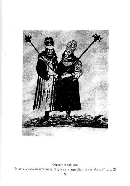 В это время Отец Величия сотворил посланника и сияющего Иисуса, и Деву света, и Столп Славы и богов...[1768] Четвертое время, время, когда они заплачут, -~- это время, когда статуя (άνδρίας) поднимется в последний день мира...[1769] В тот самый час, когда поднимется последняя статуя, они заплачут...[1770] Первая скала — это столп (στϋλος) славы, совершенный человек, который был вызван величественным посланником. .. Он родил весь мир и стал первым из всех рождающих...[1771] Разумный элемент (voepov) пробрался в столп славы, а столп славы — в первого человека...[1772] Одежды, названные Великим Одеянием, — это пять разумных элементов, которые сделали совершенным тело столпа славы, совершенного человека[1773].Из этих отрывков ясно, что статуя или столп — это либо совершенный Первичный Человек (τελειος άνθρωπος), либо, по крайней мере, его тело, как в начале творения, так и в конце времени. 568 Статуя в алхимии имела еще одно значение о котором стоит упомянуть. В своем трактате "De Igne et Sale" Вигенер называет солнце "глазом и сердцем разумного мира и образом невидимого Бога", добавляя при этом, что святой Дионисий называл его "ясной и понятной статуей Бога"[1774]. Вероятно имелся ввиду трактат Дионисия De divinis nominibus (ch. IV): "Солнце — это зримый образ божественного величия"[1775]. Вигенер перевел слово εικων не как "образ", а как "статуя", что не согласуется с латинским текстом сборника, опубликованного Марсилио Фичино в 1502-Згг., к которому он мог иметь доступ. Почему он перевел εικων как "статуя", понять трудно. Возможно он хотел избежать повторения слова "образ", стоящего в конце предыдущего предложения. Но возможно и другое — слово "сердце" вызвало в его памяти фразу Сениора об извлечении "из сердец статуй". Это вполне могло случиться с образованным алхимиком. Впрочем, следует подумать еще над одной возможностью: из того же самого Трактата явно следует, что Вигенер был знаком с Зохар. Там Хайе Сара, комментируя Книгу Бытия 28:22, говорит, что Малхут называют "статуей", когда она едина с Тиферетом[1776]. В Книге Бытия 28:22 сказано: "Этот камень, который я поставил памятником, Будет у меня домом Божьим"[1777]. Камень явно служит напоминанием о том, что верхнее (Тиферет) соединилось с нижним (Малхут): Тиферет (сын)[1778] соединяется с "Матроной"[1779] в священном браке. Если наше предположение верно, то статуя могла быть каббалистическим эквивалентом lapis Philosophorum, который тоже является единением мужского и женского. В той же самой главе Вигенерова трактата солнце появляется в роли жениха[1780]. Поскольку несколькими предложениями ниже цитируется святой Августин, то возможно, что Вигенер думал об отрывке, в котором Августин говорит: