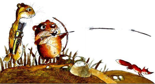 Спокойная жизнь наступила. Всюду свободно гуляли. Кормились, купались. Чуть что, Хома уже наготове!.. Затем и новенькое придумали. Выстрелит Хома в любого врага из лука. А Суслик засвистит громко. И тогда кажется, что стрела летит ещё страшнее. С двойным свистом: своим и Суслика!