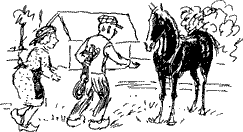 — Да что же это творится? С ума можно сойти. Пойдем-ка к лошади. Лошадь жила в самом дальнем углу, где было темнее всего. — Ну что, любезная лошадь, готова ли ты идти с нами в поле? — Я к вашим услугам, — отозвалась лошадь, — но если вы собираетесь меня запрягать, то должна вас предупредить, что я совсем крошечная. — Ну вот! Еще одна! Совсем крошечная! Заглянув в угол, родители так и ахнули. В полумраке, на желтой соломенной подстилке они увидели малюсенькую лошадку, ростом вдвое меньше петуха.