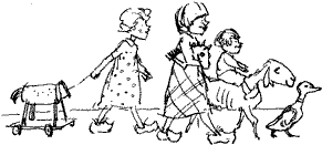 — На этот раз я вас прощаю, но только потому, что у вас такие хорошенькие дочки. На них достаточно один раз взглянуть и сразу видно, что они очень умненькие и послушные. Правда, девочки? Дельфина и Маринетта покраснели до ушей и стояли, не смея слова вымолвить, а селезень, не растерявшись, ответил: — Послушней их во всем свете не найти.