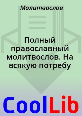 ![]() | Добавлена: 08.09.2019 Версия: 1.013 Дата авторской / издательской редакции: 2009-04-07 Дата создания файла: 2011-02-19 Кодировка файла: UTF-8 (Fb2-info) (ссылка для форума) (ссылка для блога) (QR-код книги) [url=https://coollib.xyz/b/451344] [b]Полный православный молитвослов. На всякую потребу (fb2)[/b] [/url] <a href=https://coollib.xyz/b/451344> <b>Полный православный молитвослов. На всякую потребу (fb2)</b> </a> QR-код книги ![]() Аннотация Полный православный молитвослов создан на основе материалов сайта http://www.molitvoslov.com |
