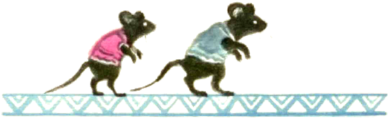 — Ладно, — сказал петушок, — я снесу зерно на мельницу. Взвалил себе на плечи мешок и пошел. А мышата тем временем затеяли чехарду. Друг через друга прыгают, веселятся.
