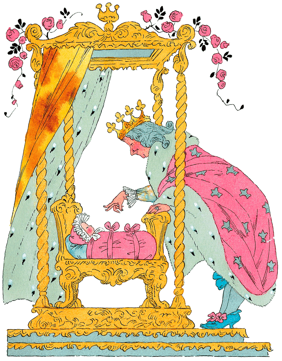 — Утешьтесь, король и королева! Ваша дочь останется жива. Правда, я не так сильна, чтобы сказанное сделать несказанным. Принцесса должна будет, как это ни грустно, уколоть себе руку веретеном, но от этого она не умрёт, а только заснёт глубоким сном и будет спать ровно сто лет — до тех пор, пока её не разбудит прекрасный принц.