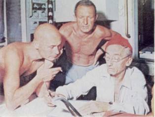 Обсуждается программа подводных работ. Слева направо: Андре Лабан, Фредерик Дюма, Жак-Ив Кусто