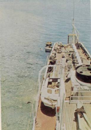 Этот отряд сообщил мне новость, которой я больше всего опасался: кораллы острова Map-Map погибают. Нет того изобилия, нет тех красок, что восхищали нас во время прежних визитов. Я захотел сам убедиться, в этом, ушел под воду и увидел, что кораллы на больших площадях умерли. Похоже было, что гибель грозит всему рифу. Причина — во всяком случае, здесь, на Фарасанах — очевидна. Идя к этим необитаемым островам, лежащим в стороне от морских путей, встречаешь огромное количество плавающего на поверхности мусора.