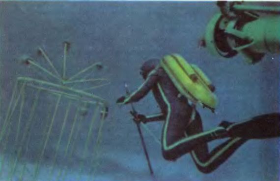 Сквалоскоп. Он был сконструирован Жан-Мишелем Кусто из пластика и алюминия; цель – изучение акул в неволе. Сквалоскоп годится только для кратковременной работы, он слишком мал, не позволяет акулам плавать достаточно быстро для вентиляции жабр, и акулы вскоре погибают из-за нехватки кислорода. Сквалоскоп применялся главным образом у рифа Шаб-Араб. Из-за хрупкости его было непросто опустить в воду, но он хорошо послужил, когда понадобилось проверить на акулах действие транквилизаторов и некоторых других веществ.