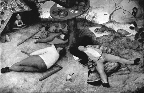 Фламандські звичаї вживання алкоголю 1567 року. Селяни відпочивають після святкування. Картина Пітера Брейґеля Старшого