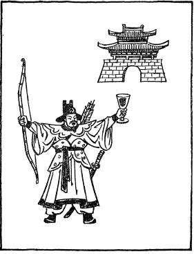 В девятую луну князь отправился к Грудному морю самолично взглянуть, как строится новый город. Берег был окутан туманом, по небу ползли мрачные тучи… На берегу он увидел множество людей, которые с грустными, скорбными лицами ходили взад-вперед, не останавливаясь ни на минуту. Это были те, кто строил город. За работой надзирал Фу-су[322] — непокорный сын циньского Ши-хуана, ему помогал Мэн Тянь.[323] Под началом у них было около четырехсот сонби[324] — тех самых, которых заживо похоронил циньский тиран. Работали они не очень споро, но город построили в срок. Глины и камней при строительстве использовали не много, поэтому работалось легко: не нужно было возить глину и перекатывать камни. Пришельцы хотели сначала построить большой город, но земли не хватало. Потом решили строить маленький. Но тогда пришлось бы все постройки размещать внутри города. В конце концов был построен обычный город. На севере он упирался в Тайшань, а на юге доходил до Бохайского моря. Территория его начиналась у Эмэйских гор.[325] Весь он был такой унылый и грустный, что и назвать его решили Городом Печали. В центре города возвышалась башня «Память прошлых деяний», в крепостной стене было четверо ворот: Ворота Преданности, Ворота Борьбы, Ворота Невиновности и Ворота Разлуки. Князь переправился через море, поднялся на башню и велел открыть все ворота, дабы осмотреть город. Уныло светила луна, тоскливо завывал ветер. В воротах крепости толпились люди — на лицах у них были написаны обида, недовольство, скорбь. Князь уселся и приказал писцу Кисточке[326] составить подробное описание Города Печали. Роняя слезы, Кисточка принялся за дело.