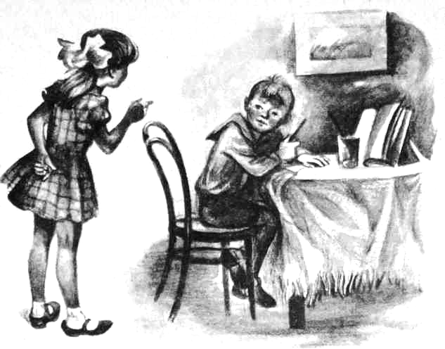 Костя каждое утро выходил на крыльцо, отпирал ключиком ящик и доставал большую «Правду» — для папы и «Пионерскую» — для себя. Валя просила его: — Дай мне разок отпереть ящик! Дай мне щёлкнуть замочком! — Нельзя, — отвечал Костя. — Я заведующий почтой, а не ты. — Дай хоть «Пионерку» почитать! — Погоди, сначала я почитаю. Я заведующий почтой, а не ты. Костя лёг на диван и стал читать. А Валя вышла на крыльцо поглядеть, не забыл ли Костя запереть ящик. По правде сказать, ей очень хотелось, чтобы Костя хоть разочек позабыл запереть его. И вдруг она увидела: на полу, под ящиком, лежит письмо. Валя подняла его и побежала к Косте: — Костя, Костя, смотри, ты письмо уронил! — Погоди, не мешай, — сказал Костя. — Не видишь, я читаю… — И стал вслух читать: — «Благородный поступок. Девочка шла по молодому льду. Вдруг она провалилась. Проходивший мимо пионер кинулся в воду и спас девочку. Честь и слава отважному пионеру!» Честь и слава! — вздохнул Костя. — Здорово! А вот около меня никто никогда не тонул, как нарочно. — Костя, — повторила Валя, — ты письмо уронил! Костя поверх газеты посмотрел на Валю: — Ладно! Брось его — и всё. — Как это «брось»? — удивилась Валя. — Ведь это письмо к нам, вот: «Заречная, 52, квартира 6». — Эх ты, грамотная! — сказал Костя. — У нас «Б. Заречная», а там «М.» — значит, «Малая». Валя снова посмотрела на письмо. Верно: «М. Заречная, А. В. Степановой». — Костя, а кто это А. В. Степанова? — А я почём знаю, — сказал Костя, — если почтальон ошибся! Отдашь ему — и всё. И Костя снова уткнулся в газету. А Валя села у замёрзшего окошка и стала ждать почтальона.3. Вечером