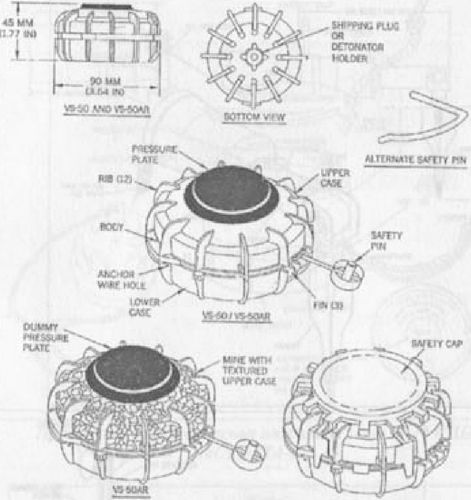 Вообще, этот класс противопехотных мин (фугасные нажимного действия) весьма популярен в мире. Эти мины производились и производятся многими странами, в том числе и подписавшими Оттавскую конвенцию о запрещении противопехотных мин. Вот неполный, хотя и обширный, перечень мин и стран, производивших эти мины, включая и те, о которых говорилось выше: Испания — FAMA, P-4B, P-4A, P-5 (копия итальянской SB-33); Аргентина — FMK-1; Перу — MGP-30; Бразилия — T-AB-1, Min AP NM-AE-T1; Чили — MAP-II, MAPP-78F2; Пакистан — P-2Mk2, P-4Mk-1; Индия — американская M-14; Япония — канадская C-3A как Тип 67; Вьетнам — американская M14 как MN-79 (западная классификация) и ее модифицированный вариант MD-82B; Греция — итальянская SB-33, производившаяся под именем EM-20; Дания — копия американской M14; Израиль — № 3, № 4, № 10; Португалия — M412 (копия SB-33), M969 (копия NR409), M411 (MAPS); Куба — PN-1, CP X-1, CP X-2; Швеция — M49 (MAPS), M43, M41, Truppmina 11; Турция — американская M14; ЮАР — R-2M1 и R-2M2, как и производившиеся американские M14 и китайская T-72; Франция — Mi AP DV-59, Mi AP DV-56, Mi AP DV-51, Mi AP DV Piguet-61, Mi AP DV Piguet-63, Mi AP ID-48; Голландия — NR-22C1 (копия Mi AP DV-59), NR-22 (копия Mi AP DV-51), NR-15; Бельгия — PRB-409 (NR409), PRB-M35 (NR257), PRB-BAC; Чехословакия — PP-Mi-Ba, PP-Mi-D, PP-Mi-Na; Румыния — MAI-68, MAI-75, MAT-68, MAI-GR-1, MAI-GR-2; Болгария — ПМ-79, ПМН; Венгрия — Gayata 64, M-49, M62, M65; Великобритания — № 6, № 7, «Doris», № 5 Mk1; Германия — Shue.Mi.42, Shue.Mi.400, PPM-2, DM-11; Северная Корея — M-57; Сингапур — SPM-1 (копия VS-50), TS-50; Финляндия — SM-65; Швейцария — PATVAG-59, PATVAG M-3, Model 43; Канада — C-3A1; Египет — T-79 (копия VS-50), T-78, TS-50; Иран — YM-1 (копия TS-50), № 4; Китай — Тип 48, Модель 1989, T-72 (A, B, C); Италия — RM, SB-33, AUPS, VAR-40, VAR-100, VAR-100SP, VS Mk-2, VS Mk-2EL, VS-50, TS-50, VS-50EO3, VS-50AR, MAUS, MAUS-1; США — M-14, M-25; Россия — ПМН, ПМН-2, ПМН-3, ПМН-4, ПФМ-1; Югославия — ПМА-1, ПМА-1А, ПМА-2, ПМА-3. Я не претендую на то, чтобы считать этот список полным, и, вероятно, ест некоторые марки мин, мною не упомянутые, так же как и страны — разработчики и производители мин или производящие мины по лицензиям. Но, с другой стороны, эти типы мин перечисляют известные базы данных Janes Guide Mines, ORDATA, Mine Facts, GF-MAG, созданные большими информационными группами США, Великобритании и Канады, за которыми стоят государственные органы. Если данные по упомянутым в этой работе названиям мин собрать воедино, то они могли бы послужить для издания новой базы данных на русском языке и стать неплохим справочником для российских минеров и деминеров.***