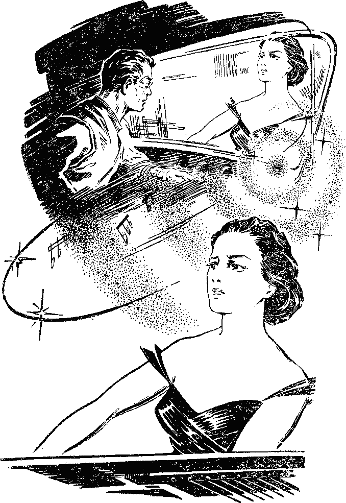 — Смотри, здесь даже сохранились еще деньги! «Вождь ирокезов» берет их за проезд! — показала Вилена Арсению на полицейского в трусиках и широкополой шляпе, который взимал плату со стоящей впереди машины. Похожая на дельфина, она вскоре ринулась в туннель, а полицейский подошел к Ратовым. Высокий, с гордо посаженной головой, горбоносый, сбоку он походил на древнего индейца. Но его широкое, словно чрезмерно загорелое скуластое лицо, с прищуренными глазами, напоминало Ратовым знакомые черты восточных народов. Арсений молча расплатился. — Очень прошу вас, — вежливо сказал индеец, — на воздушную подушку переходите после выезда на надземное шоссе. Иначе в туннель засосет всю городскую пыль. В дальнейшем слушайте указания автоматов. Скорость не снижайте. Счастливых гастролей. — И он приветливо улыбнулся, намекнув, что знает проезжих по фотографиям в газетах. Электрические лампочки в туннеле слились в яркие полосы. Путешествие под мореподобным Гудзоном, как назвала его Вилена вверху, занимало считанные минуты. Скоро нестерпимо яркий солнечный свет ударил в глаза. — Город внизу! — обрадовалась Вилена. Шоссе взлетело на эстакаду. По обе стороны раскинулся старинный город Джерсей-сити, позади виднелись неровными столбиками полуразрушенные нью-йоркские небоскребы — символ свергнутого строя. Вот он, незалеченный след минувшей гражданской войны, последней в истории войн против угнетения! — Воздушная подушка, — предупредил Арсений, включая автомат вождения. Колеса машины ослабли, и она мягко осела, почти коснувшись шоссе. От скорости захватывало дух. Концертов Вилены и лекций Арсения о звездном полете ждали повсюду. Молодые супруги испытывали такую остроту от новых впечатлений, словно перед ними был не земной мир. Они нигде подолгу не задерживались, все мчались и мчались навстречу новым пейзажам, новым людям… — Смотри, смотри! Стена! И прямо чуть ли не до неба, — поразилась Вилена, увидев перед собой дом-город. — Символ нового времени. Четыреста этажей, — отозвался о необыкновенном сооружении Арсений. — Вот где не хотела бы жить! — Построен кольцом. Внутри заповедные парки. — Люди должны жить в парках, а не над ними. — Кто к чему стремится. У каждой семьи — балкон-сад. Фасад уступами, как пирамида майя. — Нет, не так должны жить люди в будущем, — начала Вилена и осеклась: они с Арсением договорились никогда не говорить о будущем. На Ниагаре Вилена почувствовала себя плохо и подумала, что виной тому ресторанчик, куда они с Арсением забрели в день приезда. Маленький домик коробочкой с высокой односкатной крышей. Вместо вывески надпись: «Открыто для всех». Обстановка внутри показалась чем-то знакомой. Во всю стену длинная стойка с бутылочками разных соков и соусов и с зажимами для бумажных салфеток, с уморительным и совсем разным рисунком на каждой из них. Позади стойки — черная доска с меню: сандвичи, горячие «собаки» (сосиски), супы острые и обыкновенные, говядина натуральная или искусственная с самым лучшим набором аминокислот — чудесный вкус, приятный запах, очень полезно для больных диабетом… С больших плакатов на Вилену с Арсением смотрели… они сами, то есть Ратовы, улыбающиеся, счастливые, держащиеся за руки. Под изображением красовалась надпись: «Самая счастливая пара века». Вилена расхохоталась. Ей хотелось сказать бармену, чт