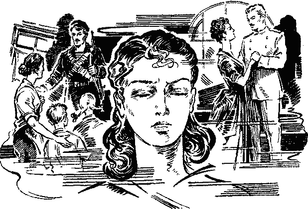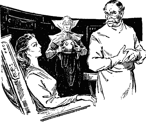Операционная профессора тен-Кате ничем не напоминала хирургическую, если не считать того, что стены ее были выкрашены тоже в черный цвет, как и в операционной академика Руденко. Черными были и огромные щитовые панели, на них выделялись желтые циферблаты, по преимуществу прямоугольные. И Вилене сразу вспомнилась рубка управления звездолета, какой она увидела ее во время видеосвидания. Стало как-то легче. Если все будет удачно, то она войдет все-таки в такую же рубку. — Готовы ли вы, смелая женщина? — ласково спросил профессор, с улыбкой вставший из-за пульта ей навстречу. Вилена не видела, чтобы до этого он улыбался, — около глаз у него появились морщинки, похожие на трещинки. Усадив Вилену в кресло, тен-Кате пошутил: — Не сочтите это за такие древности, как зубоврачебное кресло или электрический стул, — и сам же засмеялся. Вилена осталась серьезной. Сестра ван Дейсс подошла к ней с огромным шлемом, от которого тянулись к черному пульту пружинки проводов. Вилена вспомнила о говорившей Ладе. Когда Ланской-Ратовой надевали на голову шлем, она зажмурилась, но заставила себя открыть глаза. И ей представилось, что на нее надели космический шлем.