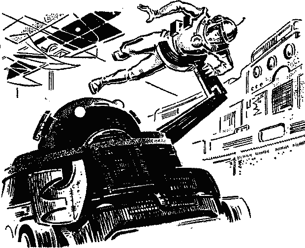 Шаги гулко отдавались в огромном пустом зале. Вилена не могла отделаться от ощущения, будто вошла в древний языческий храм. Торжественная тишина, волнение, купол над головой, огромные панели с мистическим узором сигнальных ламп… Ей припомнилась фраза на снова забытом теперь ею этрусском языке: «Сияющему свету ласковому». Виев подвел ее к пульту: — Нажмите клавиши — и ваш экзаменатор приведен в действие. Считайте, что просто пользуетесь электронным словарем. Экзаменуйте себя сами. И Виев ободряюще обнял ее за плечи. Потом торопливо вышел. Вилена осталась одна против могучего электронного мозга, способного решать сложнейшие задачи космических полетов. Стало жутко. Неосвещенные циферблаты на пульте напоминали глаза притаившегося чудовища. Вилена встряхнулась. Если она рвется в полет на другую планету, то ей ли бояться безобидной машины, сделанной человеческими руками? С тем ли приведется ей встретиться в других мирах? Но все равно противник был серьезный. Вот если бы с нею была маленькая сумочка с магнитной памятью, которую приготовил милый Ваня Болев!.. Тогда против многоглазого чудовища у Вилены был бы верный защитник «той же электронной породы». «Возьми себя в руки, — приказала себе Вилена и, пересилив робость, твердыми шагами подошла к «противнику» вплотную. — Ни с одного из видеоэкранов не увидят наблюдатели растерянного лица! Ведь здесь проверяются не только знания, но и сила, выдержка, самообладание соискательницы. Не экзамен, а испытание!» Белые клавиши отражались в черной панели. Сходство их с роялем неожиданно помогло Вилене, знакомое чувство власти над слушателями сменило волнение. Она села, занесла руки над пультом, коснулась пальцами клавиатуры, словно взяла первый аккорд. И затаившееся чудовище ожило. С одного конца пульта до другого молнией сверкнули сигнальные лампочки…