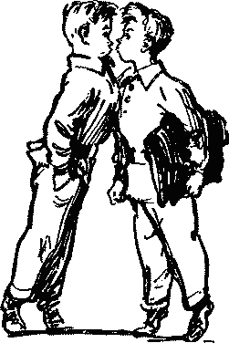 Вася с тоской посмотрел на такое знакомое, такое родное здание, покосился на пушистые маленькие кедры, которые посадил, его пионерский отряд в прошлом году, и побежал вперед. В теплом вестибюле школы раздался звонок, и почти сейчас же огромное здание наполнилось шумом и громом: в средней школе окончились занятия. Вася пристроился в уголке около раздевалки, но здесь его заметила худая и вечно злая сторожиха тетя Поля. Она подозрительно посмотрела на Васю и спросила: — Опять драться пришел?