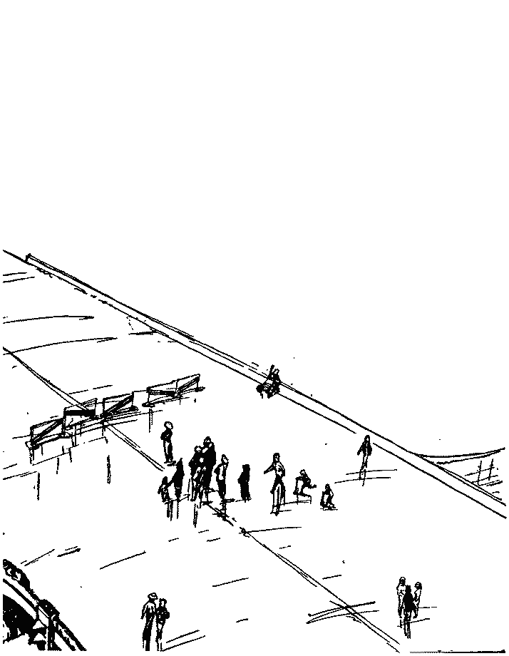 Переваливаясь на кочках, электронка выбралась на шоссе, и дедушка чуть прибавил скорость. Сделать это было нетрудно — стоило только нажать педаль и, значит, передвинуть рычажок реостата. В электромотор поступило больше тока из аккумуляторов, и машина побежала быстрей. На повороте, где несколько часов назад Тузик испугался автопоезда, на щитке электронки зажегся красный сигнал. Дедушка поправил зеркальце и увидел, что сзади его догоняет новый автопоезд. Красный сигнал зажег специальный аппарат, который зорко наблюдал за всем, что делается позади, и заранее предупреждал водителя об опасности. Электронка прижалась к самой обочине шоссе. Мимо промчался автопоезд. Его вагоны были окрашены в светлую краску, в них было множество широких окон, возле которых сидели пассажиры; вагоны-прицепы мелькали со скоростью курьерского поезда. — Атомка промчалась! — с завистью сказал Женька. «Ах, вот что такое атомка! — подумал Вася. — Это, видно, автопоезд, работающий на атомной энергии. Да, такие атомки делать гораздо лучше, чем те, что делали когда-то». Воспоминание о тех далеких днях, когда атомками называли атомные бомбы, заставило Васю опять вспомнить о своем странном положении, и он снова загрустил. Лена тоже задумчиво ответила Жене: — Это пассажирский экспресс порт Уэлен — Ужгород. — А не московский? — ревниво спросил Женя. — Нет, московский проходит раньше. — Вот вырасту, — мечтательно протянул Женька, — и стану водителем атомных поездов! — Не очень-то интересно, — заметила Лена. — Все время в дороге. Они же могут вокруг света без остановки проехать. — Мало ли что могут! — возразил Женька. — А водителей-то все время на станциях меняют. Сменился — и кати куда хочешь! Красота! — Да! — почти с завистью сказал дедушка. — Атомки — хорошее дело. Недаром железные дороги перестали строить. Атомка ведь везде пройдет. Пока выяснялись все преимущества безрельсовых атомных поездов, электронка вдруг замедлила ход и остановилась, хотя Вася ясно видел, что дедушка при этом даже пальцем не шевельнул. — Перекресток, — сказал дедушка. — Что: ж, подождем. — Вот, «подождем»!.. — обиженно протянул Женька. — Меня так за руль не пускаете. А ведь вот сами заговорились, и автотелефонотормоза за вас сработали — остановили машину. А то б наверняка нарушили правила уличного движения. — Ладно тебе! А фотоэлементы у нас на что?! Из дальнейшего разговора дедушки и Женьки Вася сделал вывод, что и дороги и машины устроены так, что даже при всем твоем желании совершить аварию, сделать это не позволят фотоэлементы. Они установлены на всех машинах, и на всем протяжении шоссе: на перекрестках и поворотах полосами нанесена особая краска, посылающая невидимые простому глазу лучи. Их-то и ловят установленные на машинах приборы и автоматически помогают водителю, предостерегая его от опасности и предотвращая аварии. И сейчас же вспомнился случай на шоссе: бешено мчащийся прямо на Тузика автопоезд, растерянный водитель. Да, крушение тогда было неизбежно. Его предотвратили умные приборы. Как тогда вильнула атомка! Как понеслась! Вот теперь ясно: полосы вдоль обочины шоссе — это своеобразный фотоэлементный барьер, который не позволяет машине выезжать за его предел. Пожалуй, Женька-маленький прав: при такой технике машину может водить не то что третьеклассник, а даже первоклассник. 