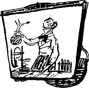 — Да, — усмехнулся дедушка, — не дотанцевал Лунный вальс. Попало? И правильно! Подумаешь, разукрасился! Скафандр — розовый, канты — зеленые, отвороты — голубые… Как попугай. Оказывается, любители пооригинальничать и позадаваться пробираются даже на Луну. Три земных человека посмеялись над одним лунным, и Вася спросил: — А что они все-таки делают там? — Как — что? Это же лунный рудник. Добывают некоторые элементы, которых нет на Земле, — те, что открыли с помощью спектрографов. Сделали лунные машины, приспособили их к тамошней обстановке и работают. Причем интересно: на Земле ты эти машины с места не сдвинешь, а на Луне они действуют отлично. Что значит разница в условиях! А сейчас вот обслуживающий персонал проверяет, как они готовы к производственному циклу, чтобы поломок не было. Лунные люди заканчивали осмотр машины, ставили кожухи на места и наконец скрылись в своем домике. Он, как и домик на Земле, был покрыт уже известной Васе фотоэлементной краской. И здесь, на Луне, она занималась обычным своим делом: перерабатывала световую энергию в электрическую, которая то отапливала домик, когда это требовалось, то, наоборот, охлаждала его.