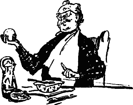 Сила воли помогла Васе Голубеву в первые же минуты обеда. В столовой собралось все семейство Масловых: дедушка, жена его сына Валентина Петровна, Лена и Женька. Их отца — техника автобазы Александра Евгеньевича — дома не было: он уехал на завод за новыми автомобилями. Взрослые спокойно, даже равнодушно показали Васе свободный стул. Вася вспомнил, что мама учила его никогда не садиться до тех пор, пока не сядут взрослые. Вася так и сделал. Он скромно стоял, слегка нахмурив брови, у своего стула и старался ни на кого не смотреть. Лена и Женька, конечно, немедленно уселись на свои места и потянулись к тарелкам с салатом и селедкой. Валентина Петровна немедленно отметила это. — Лена! Женя! — сказала она укоризненно. — Ну, когда вы научитесь вежливости? Дедушка еще не сел за стол, а вы уже за салат. Нужно быть более сдержанными. Вот поучитесь у Васи. Да, как это ни удивительно, хоть и через пятьдесят лет, но Васино поведение все-таки было поставлено в пример. Вот что значит сила воли! Взрослые сели, и тогда уселся и Вася, сжав ладони коленками. Валентина Петровна спросила: — Ты салат любишь? А селедки тебе положить? Честно говоря, Вася, конечно, хотел и селедку и салат. Да что там салат! Хоть бы до хлеба добраться… Но он понимал, что находится в гостях. А мама не раз учила его, что в гостях не следует набрасываться на еду, и поэтому он промычал что-то такое, что можно было понять и как «Да, пожалуйста» и в то же время как «Нет, благодарю вас». Валентина Петровна сразу же поняла Васю и взяла его тарелку. Женька ехидно и в то же время как будто бы невинно сказал: — Мама, он же не будет есть морского салата. — Почему? — удивилась Валентина Петровна. — У него же очень своеобразный вкус. — У салата, конечно? — спросил Женька. — Да, разумеется. Ведь я еще не знаю Васиных вкусов. — Ну вот видишь! А предлагаешь морской салат… — Ты знаешь, что это такое? — наклонился Женька к Васе. — Это всякая морская трава: водоросли, морская капуста, морские огурцы, морские помидоры — их недавно вывели. И всякое такое… С непривычки никак не лезет. — Не говори глупостей! Китайский салат — очень вкусное и полезное блюдо. — Ну, смотри сама, мама, — скромно потупил глаза Женька. — Морской салат нравится не всем… Валентина Петровна пожала плечами и, постучав ложкой по тарелке, спросила у Васи: — Ну как? Положить или не нужно? Вася растерялся. Салат, конечно, всегда был вещью вкусной. Но морской? Из водорослей? Он никогда не слышал, чтобы водоросли ели, да еще какие-то там морские огурцы и помидоры. Но раз едят все… Впрочем, дедушка не положил себе салата. Он привык к старой пище и морские салаты, видно, недолюбливает. Значит, и Васе стоило бы вначале присмотреться, а то съешь какой-нибудь ерунды, а потом хорошего, знакомого не захочется. — Так положить или нет? — опять спросила Валентина Петровна. Дедушка хитро щурился. Лена молчала. Женька беззаботно ковырялся в тарелке. Надо было решать самому. Сила воли еще не оставила Васю. Он взял себя в руки и решил сманеврировать: — Скажите, а это действительно китайский салат? — Ну конечно! В Китае очень любят различные съедобные морские водоросли. Они очень полезны. Это был опасный ответ. Многолетний опыт подсказывал Васе, что, как только взрослые начинают говорить о полезности какого-нибудь блюда — оно наверняка невкусное, а порой даже противное. Но к